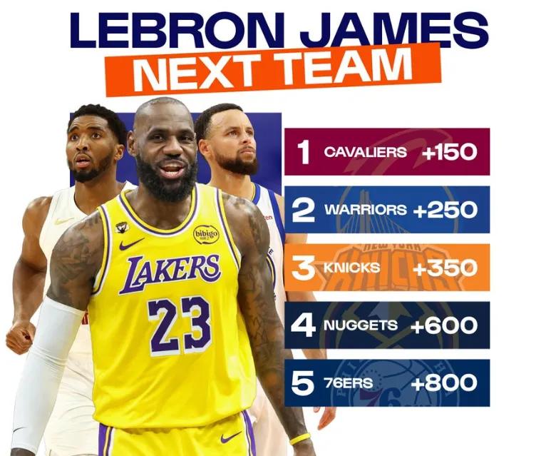 Tỷ lệ cược mới nhất cho điểm đến tiếp theo của LeBron cũng cho thấy Cavaliers là ứng viên hàng đầu, vị trí năm đội dẫn đầu lần lượt là Cavaliers (+150), Warriors (+250), Knicks (+350), Nuggets (+600) và 76ers (+800).