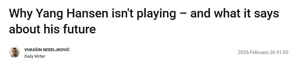Yang Hansen hiện thuộc nhóm rủi ro cao, lợi nhuận cao: nếu cải thiện khả năng phán đoán tấn công và cảm giác bóng, anh có cơ hội giữ vững vị trí, nhưng sai sót rất ít được phép xảy ra.