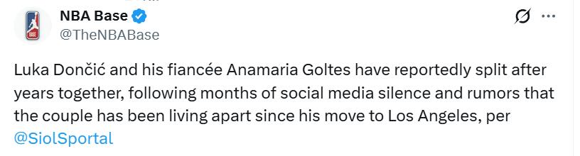 Truyền thông Mỹ thậm chí còn đưa tin rằng hai người đã chia tay từ năm ngoái, ngay sau khi Dončić được chuyển sang đội Los Angeles Lakers. Theo phân tích của báo chí địa phương, việc chuyển đến Los Angeles mang đến một vòng tròn mới, môi trường mới và cũng mang theo những cám dỗ mới.