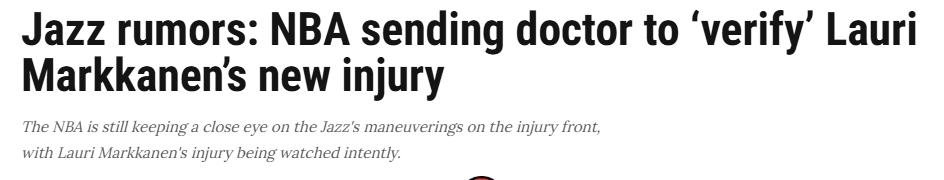 Theo phóng viên Jones của đội Jazz vào ngày 26 tháng 2 theo giờ Bắc Kinh, NBA sẽ cử chuyên gia y tế độc lập đến Utah để kiểm tra chấn thương hông mà Markkanen gặp phải trong buổi tập, nhằm xác nhận rằng Jazz không cố tình buông xuôi.