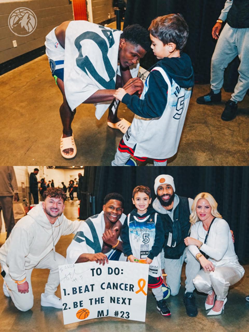 Vào ngày 27 tháng 2 theo giờ Bắc Kinh, kênh truyền thông xã hội chính thức của Timberwolves đăng hình ảnh kèm chú thích: "Luca đã chiến thắng ung thư!" Kênh chính thức của NBA chia sẻ lại: "Chúc mừng Luca!" "Luca" ở đây là một cậu bé fan nhỏ của Timberwolves. Câu chuyện giữa cậu và Edwards đã từng sưởi ấm trái tim nhiều người.