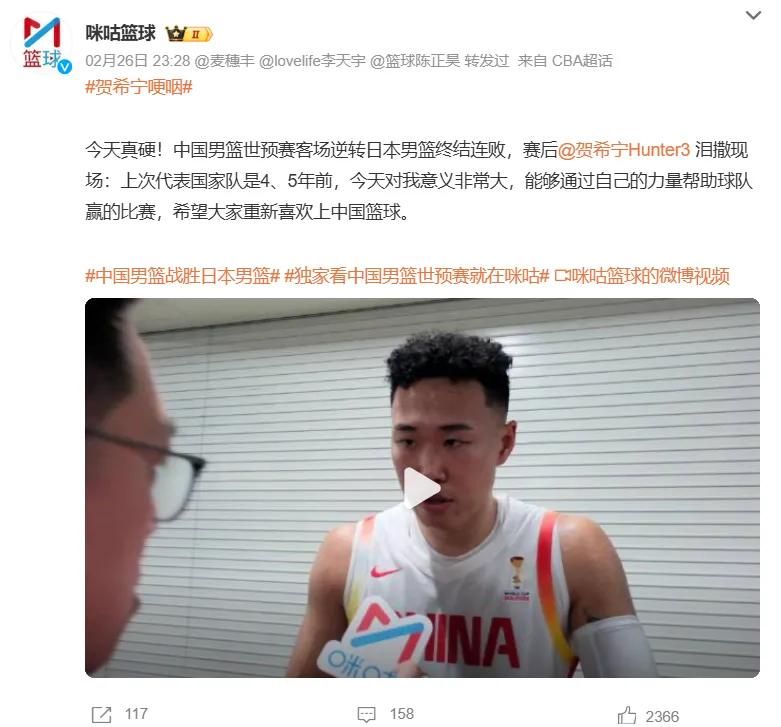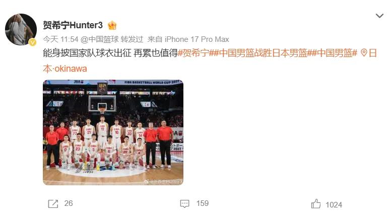 Lần gần nhất Hạ Hy Ninh thi đấu cho đội tuyển quốc gia phải truy về Cúp châu Á năm 22, khi đó là do đội bóng rổ nam Trung Quốc thiếu người nên anh bị điều động khẩn cấp tạm thời, còn lần này hoàn toàn dựa vào năng lực cá nhân để vào đội tuyển và giành vị trí ra sân chính.