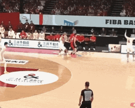Ném trúng quả ba điểm đầu tiên của đội bóng rổ nam Trung Quốc.