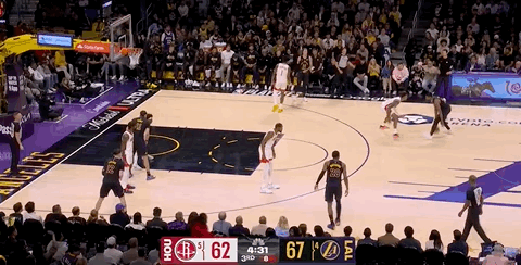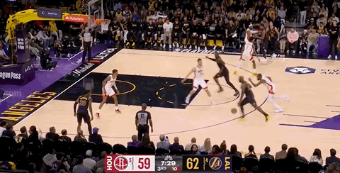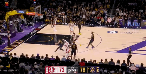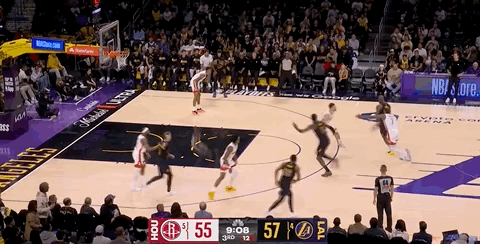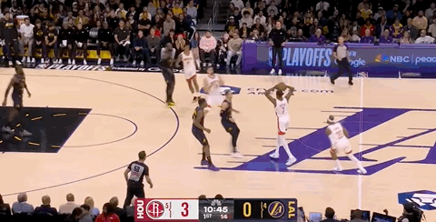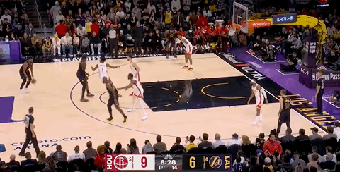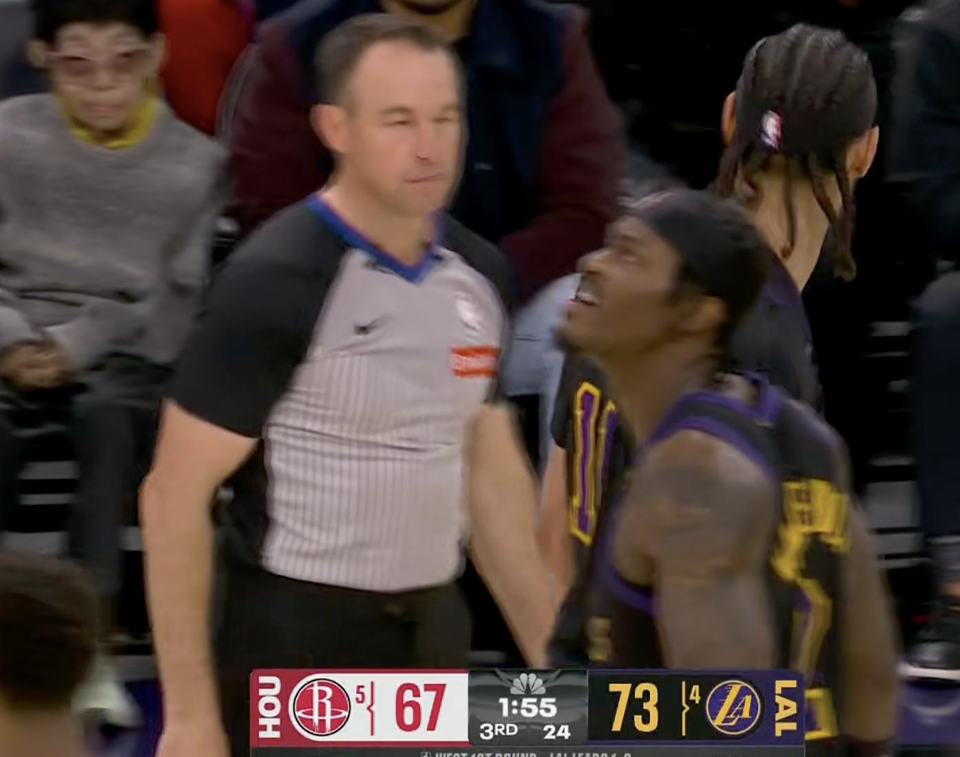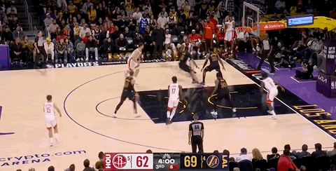 Pha này, trọng tài cho Rockets tạm ngưng, không cho tranh bóng, cầu thủ Lakers cảm xúc kích động