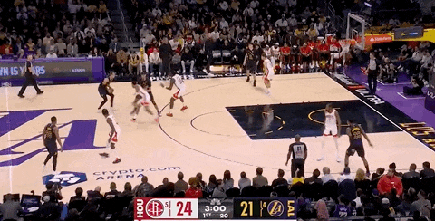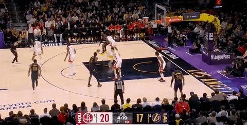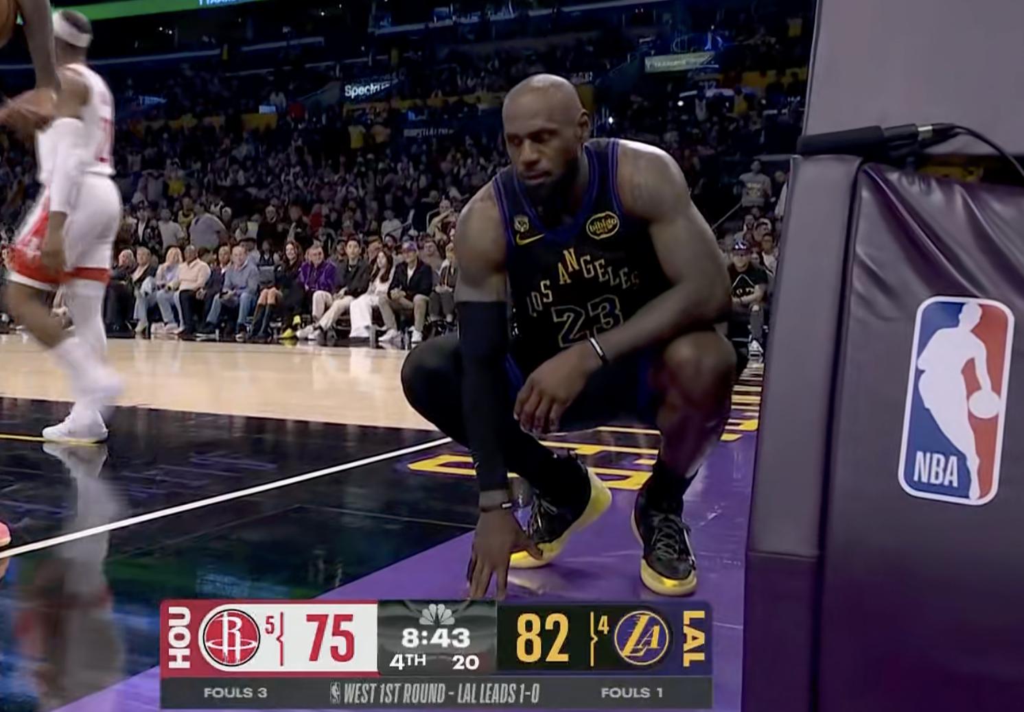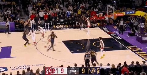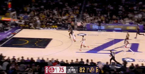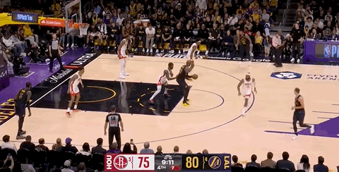 Rockets ba điểm, James lên rổ vào, rất cứng. Rockets gọi tạm ngưng.