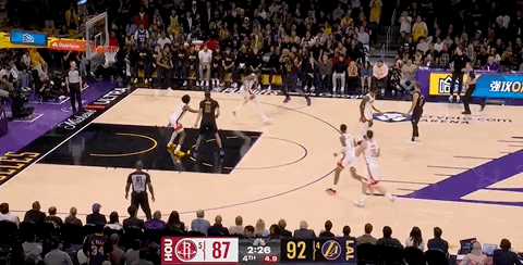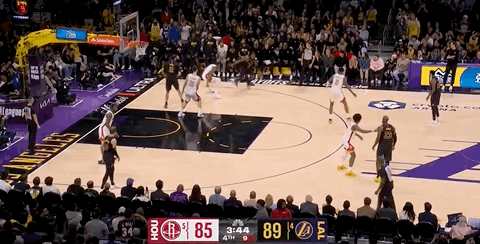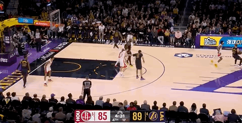 Pha này, thổi James cản trở, Lakers thách thức, thất bại. Rockets 2+1 thành công.