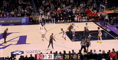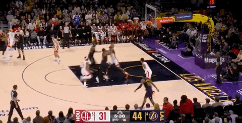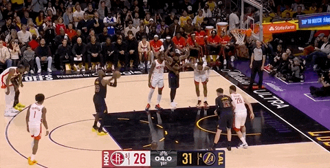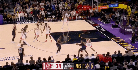 Hiệp 3, Rockets liên tiếp ghi 4 điểm vượt lên, Ayton liên tiếp ném không vào. Kennard vào ba điểm, James kiến tạo Ayton dunk