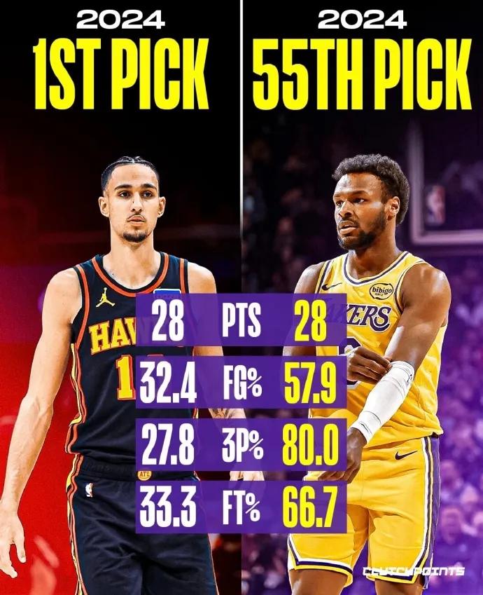 May mà có "đại thần" trạng nguyên năm 13 Bennett bảo đảm, không thì Risacher có thể sẽ được liệt vào hàng ngũ thảo luận về trạng nguyên NBA tệ nhất, đúng là có thể tranh giành trạng nguyên NBA có lượng truy cập thấp nhất, vì cầu thủ tuyển cùng kỳ là Brownie hạng 55.