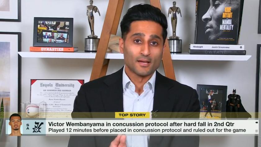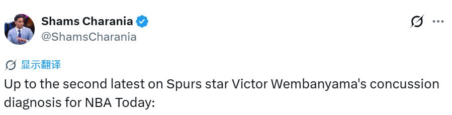 Ngày 23 tháng 4 theo giờ Bắc Kinh, cầu thủ nội tuyến của đội Spurs, Wembanyama, đã ngã mạnh trong hiệp 2 của trận thứ hai trong series với đội Trail Blazers vào ngày hôm trước và sau đó được xác định chấn động não. May mắn là hiện tại không có dấu hiệu cho thấy anh còn bị các chấn thương khác. Theo phóng viên Mike Finger của báo San Antonio Express News, huấn luyện viên Mitch Johnson đã xác nhận tình trạng này trong buổi họp báo sau trận đấu, hai nhân viên của đội cũng đã đồng ý với thông tin này.