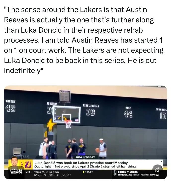 Thực tế với xu thế Lakers đang áp đảo Rockets mạnh mẽ hiện tại, hoàn toàn có thể cho Doncic & Reeves thêm thời gian nghỉ ngơi phục hồi, hai người này đến vòng hai mới cân nhắc trở lại cũng không có vấn đề.