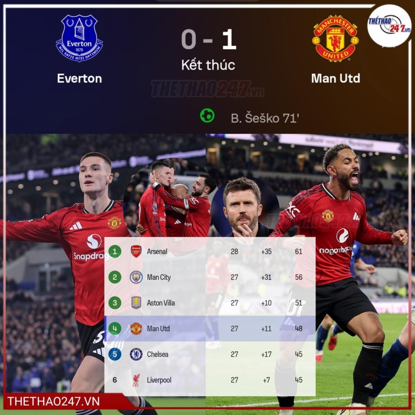 Trên mặt sân sũng nước khiến nhịp độ trận đấu bị kéo chậm, MU trải qua 70 phút tương đối bế tắc trước Everton. Carrick chỉ tung Sesko vào sân ở phút 58, thay Amad Diallo. Đó đã là trận thứ 6 liên tiếp chân sút 22 tuổi xuất phát trên ghế dự bị. Nhưng một lần nữa, anh lại “làm phần việc khó nhất”: đưa bóng vào lưới để định đoạt trận đấu.