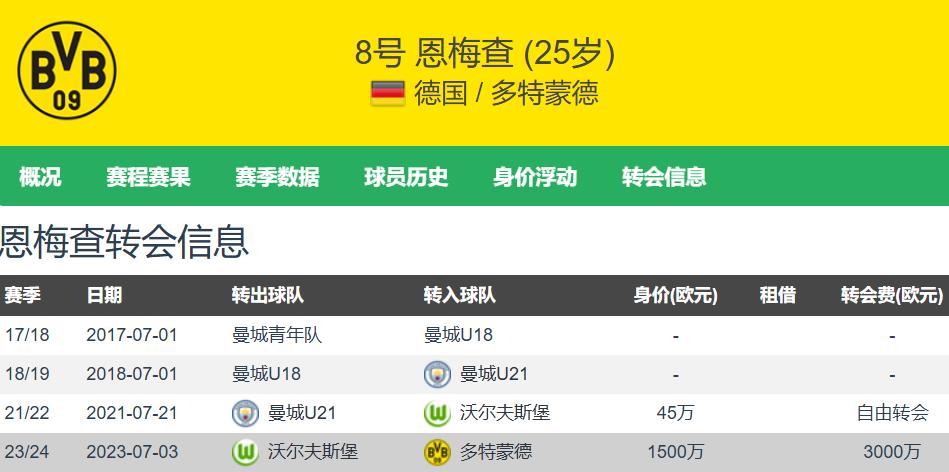 Emre Can xuất thân từ lò đào tạo Man City, cầu thủ gia nhập Wolfsburg theo dạng chuyển nhượng tự do vào mùa hè 2021, sau 2 năm, tức mùa hè 2023, chuyển sang Dortmund với giá 30 triệu euro, dần trở thành trụ cột tuyến giữa của Bumblebee và là tuyển thủ Đức. Emre Can được Dortmund chi mạnh để phát triển, bán sang Premier League sẽ mang lại lợi nhuận lớn hơn.