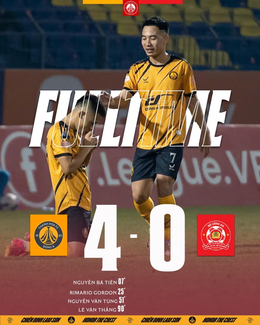 Trên sân, Thanh Hóa tạo ra một trong những bất ngờ lớn nhất của vòng 17 khi áp đảo hoàn toàn CA TP.HCM, đội bóng được đánh giá là ứng viên cạnh tranh tốp 3 mùa này. Nguyễn Bá Tiến, Rimario, Nguyễn Văn Tùng và Lê Văn Thắng lần lượt lập công, tạo nên chiến thắng đậm 4-0 cho đội chủ nhà.