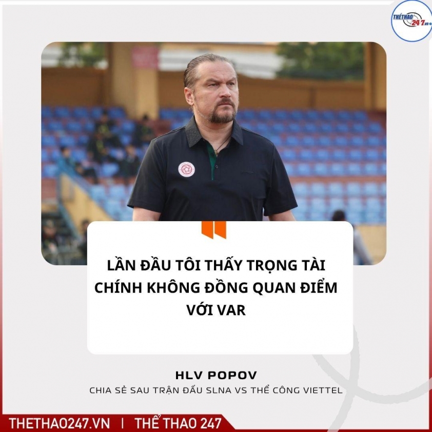 Sau trận hòa 1-1 trước SLNA ở vòng 17 V.League, HLV Velizar Popov đã trở thành tâm điểm khi đưa ra những phát biểu đáng chú ý liên quan đến công tác trọng tài và tình huống gây tranh cãi của Thể Công Viettel trong hiệp 2.