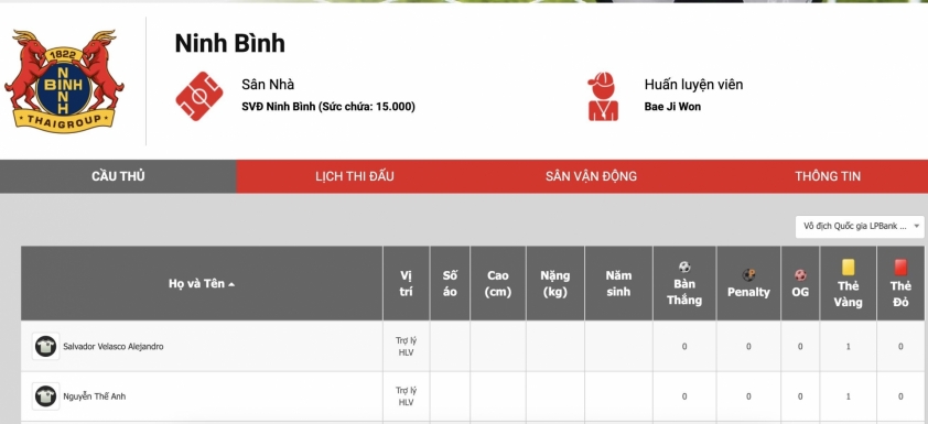 Ngay trước khi vòng 19 V.League 2025/26 khởi tranh, CLB Ninh Bình đã thực hiện thay đổi quan trọng trên băng ghế huấn luyện khi bổ nhiệm ông Bae Ji-won vào vị trí HLV trưởng. Trong khi đó, ông Vũ Tiến Thành được điều chuyển sang vai trò Giám đốc kỹ thuật. Trang web chính thức của VPF cũng đã hiển thị việc ông Bae Ji-won với chức danh HLV trưởng của CLB Ninh Bình.