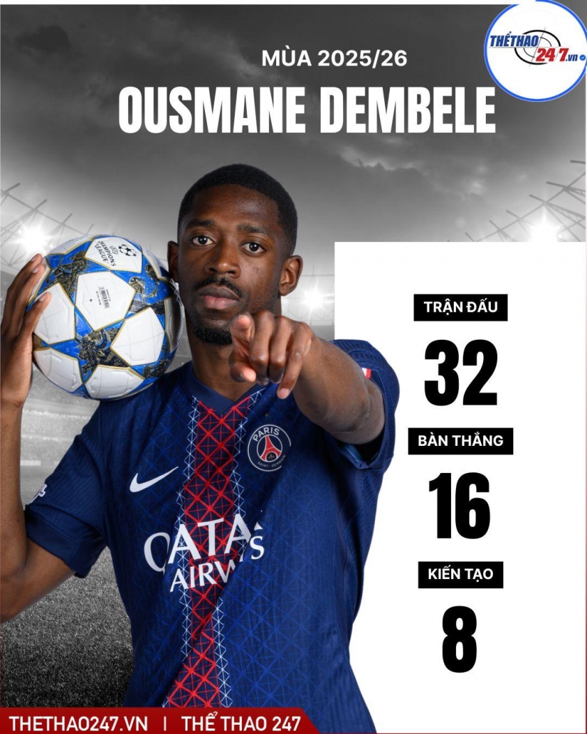 Đương kim Quả bóng Vàng đang dần lấy lại phong độ trong màu áo Paris Saint-Germain. Sau giai đoạn đầu mùa bị ảnh hưởng bởi chấn thương, Dembele đã trở lại mạnh mẽ và đóng vai trò quan trọng trong hành trình của PSG tại Champions League. Nếu tiếp tục thăng hoa, anh hoàn toàn có thể bảo vệ danh hiệu.
