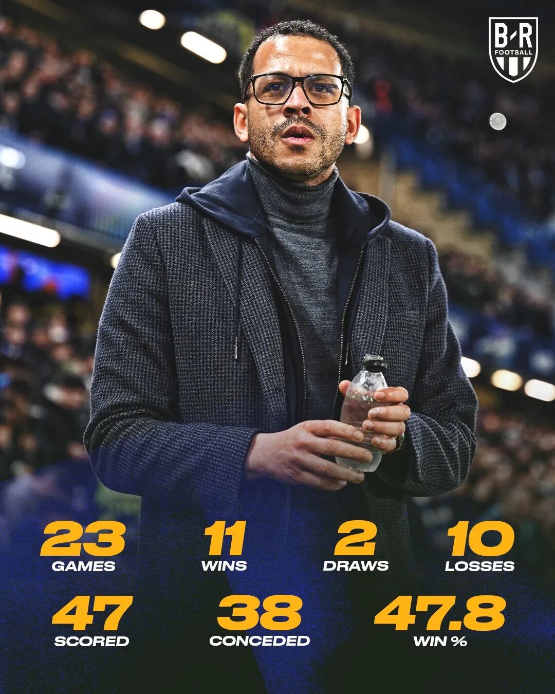 Sau thất bại 0-3 trên sân khách trước Brighton, Chelsea đã chịu 5 trận thua liên tiếp ở giải đấu và không ghi được bàn thắng, lập kỷ lục tồi tệ nhất trong 114 năm lịch sử đội bóng. Kết quả ảm đạm như vậy lần trước là vào tháng 10–11 năm 1912, khi đó câu lạc bộ Chelsea chỉ mới thành lập 7 năm; trung tâm logo đội bóng là hình một sĩ quan quân đội đã nghỉ hưu, không phải con sư tử có gậy được biết đến nhiều hơn; tàu Titanic chỉ mới chìm ở biển Bắc Đại Tây Dương 7 ngày trước, Thế chiến I còn hơn hai năm mới bắt đầu...