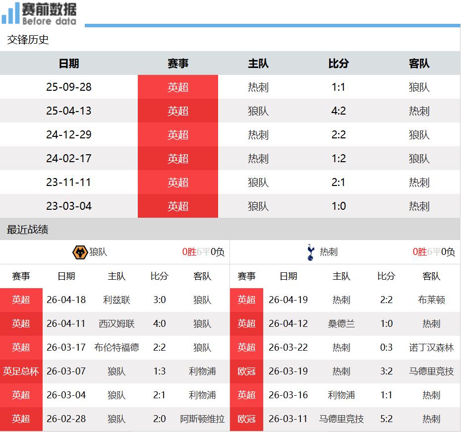 Thứ nhất:Tình hình hai đội! Sau 33 vòng Premier League, Wolves có 3 thắng, 8 hòa, 22 thua, tích 17 điểm xếp thứ chót bảng và đã xuống hạng trước; Tottenham có 7 thắng, 10 hòa, 16 thua, tích 31 điểm xếp thứ ba từ dưới, cách đội thứ 17 West Ham 2 điểm, vẫn còn cơ hội sống còn. Vòng Premier League trước, Wolves thua Leeds United 0-3 trên sân khách, chịu hai trận thua liên tiếp; Tottenham hòa Brighton 2-2 trên sân nhà, trong 15 vòng gần đây có 6 hòa và 9 thua, khó khăn tìm kiếm chiến thắng.