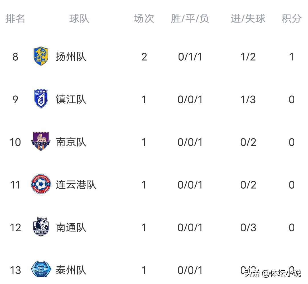 Theo giờ Bắc Kinh, ngày 25 tháng 4, các trận đấu vòng hai của giải Siêu Liên Minh sẽ khai mạc vào ngày hôm nay. Theo lịch thi đấu mới nhất, hôm nay sẽ có ba trận: Liên Vân Cảng đối đầu với đội hạng 4 năm trước là Vô Tích, Nam Thông và Từ Châu trình diễn cuộc so tài giữa các đội mạnh, và Diêm Thành tiếp đội Túc Thiên. Tuy nhiên, trước khi các trận đấu bắt đầu, hãy xem tình hình bảng xếp hạng mới nhất: Từ Châu đứng đầu, áp đảo Thường Châu, Vô Tích và Diêm Thành xếp hạng ba và hạng bốn, Thái Châu đứng chót bảng một cách bất ngờ và đáng ngại!