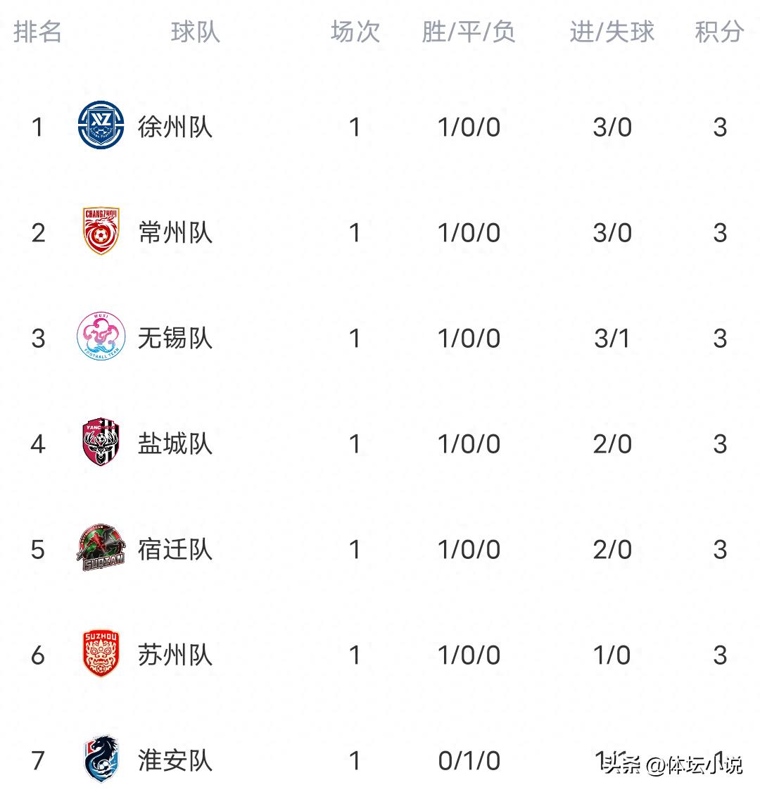 Hiện tại, do Thường Châu và Từ Châu đều giành chiến thắng với tỷ số 3-0, hai đội này tạm thời dẫn đầu top hai. Túc Thiên với chiến thắng 2-0 trước Nam Kinh xếp hạng ba. Trong khi đó, ba trong số các đội từ top 4 (champion và á quân) của mùa giải trước nay xếp cuối bảng, đó là Nam Kinh, Nam Thông và Thái Châu. Đã có 6 đội giành chiến thắng đầu tiên ở mùa giải mới!