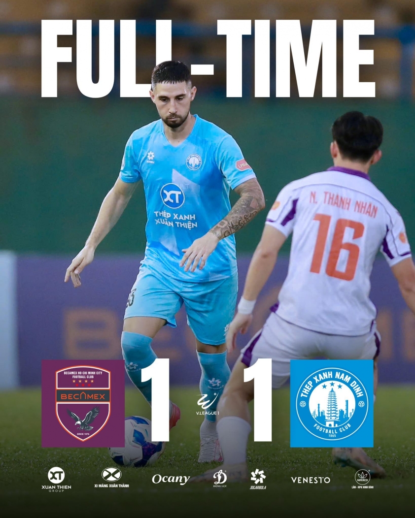 CLB Nam Định đã đánh rơi chiến thắng đầy tiếc nuối trong chuyến làm khách trên sân Gò Đậu khi bị Becamex TP HCM cầm hòa 1-1 ở vòng 20 V.League 2025/2026 tối 25/4. Tâm điểm của trận đấu không chỉ nằm ở màn rượt đuổi tỷ số hấp dẫn mà còn là tình huống Nguyễn Xuân Son bị VAR từ chối bàn thắng ở cuối hiệp hai, khiến đội bóng thành Nam lỡ cơ hội giành trọn 3 điểm.