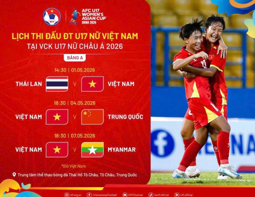 Đội tuyển nữ U.17 Việt Nam chuẩn bị bước vào VCK U.17 nữ châu Á 2026 với nhiều kỳ vọng, khi rơi vào bảng A cùng các đối thủ đáng chú ý gồm chủ nhà Trung Quốc, Thái Lan và Myanmar. Đây được xem là bảng đấu có tính cạnh tranh cao, đòi hỏi các học trò của HLV Okiyama Masahiko phải thể hiện sự chuẩn bị kỹ lưỡng.