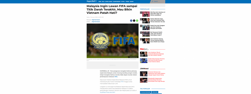 Thông tin này lập tức gây xôn xao trong cộng đồng thể thao khu vực. Trong đó tờ Superball của Indonesia đã bức xúc hộ Việt Nam. Tờ báo này giật title: “Malaysia muốn đấu với FIFA đến cùng, hay chỉ muốn làm Việt Nam tổn thương?”