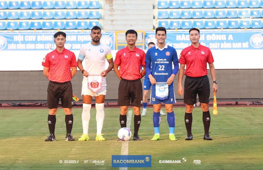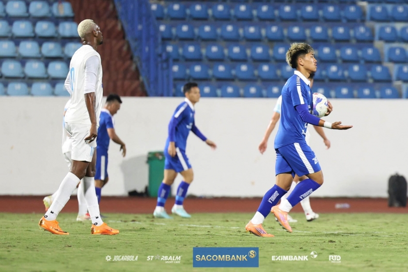 Bên kia chiến tuyến, Thép xanh Nam Định tung hai đội hình với nhiều ngoại binh góp mặt trên sân, khép lại hiệp đấu đầu tiên hai đội hoà nhau 1-1. Đáng chú ý, bàn thắng gỡ hoà 1-1 của Công an TP. Hồ Chí Minh ghi dấu ấn đậm nét của tân binh Minh Trọng. Hậu vệ này có pha tăng tốc, căng ngang chính xác để Tiến Linh đệm lòng ghi bàn.