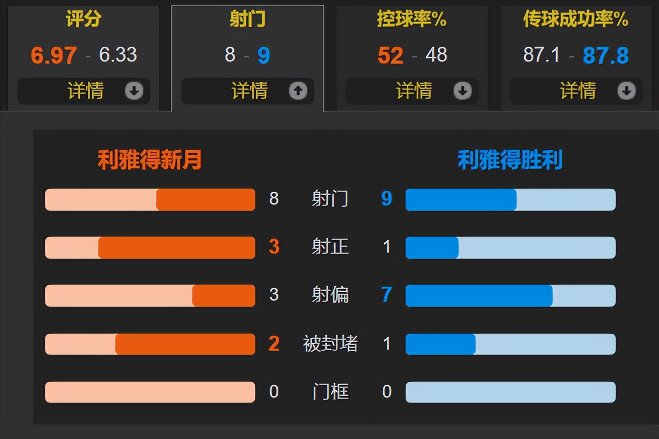 Toàn trận đấu,Al Hilal kiểm soát bóng 52%, có 8 cú sút, trong đó 3 lần trúng đích; Al Nassr có 9 cú sút nhưng chỉ 1 lần trúng đích.