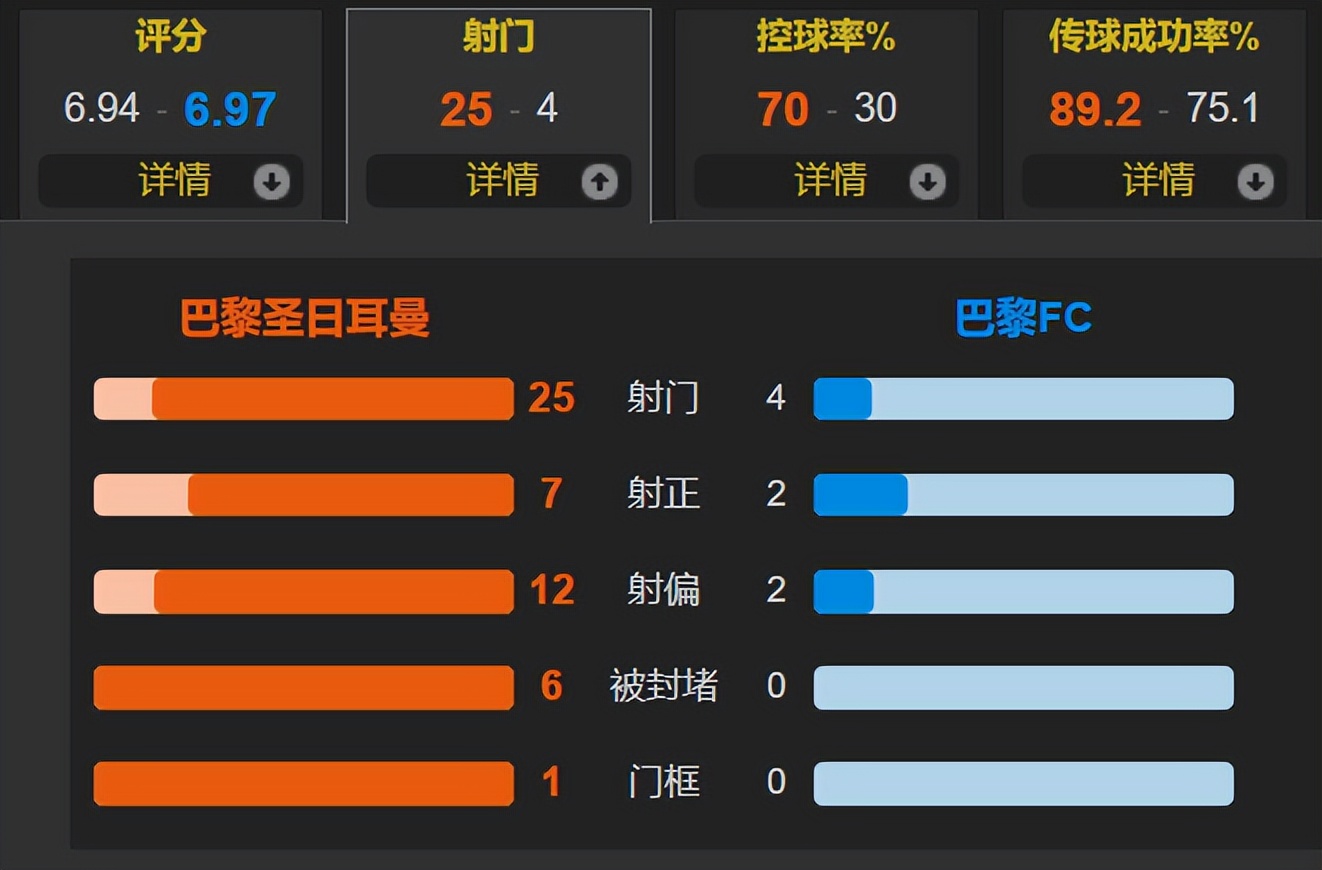 Xét về số liệu trận đấu,PSG kiểm soát bóng tới 70%, tung ra 25 cú sút, trong đó 7 lần trúng đích, nhưng không ghi được bàn; trong khi Paris FC chỉ có 4 cú sút, 2 trúng đích và ghi được 1 bàn.Đây là điển hình của việc đội yếu thắng đội mạnh! Người hâm mộ trêu rằng bạn có nhận ra rằng PSG mỗi mùa đều thua vài trận một cách khó hiểu, những thất bại khiến bạn không thể lý giải, có lẽ đó chính là “PSG”, các cổ động viên lâu năm đã không còn ngạc nhiên nữa.