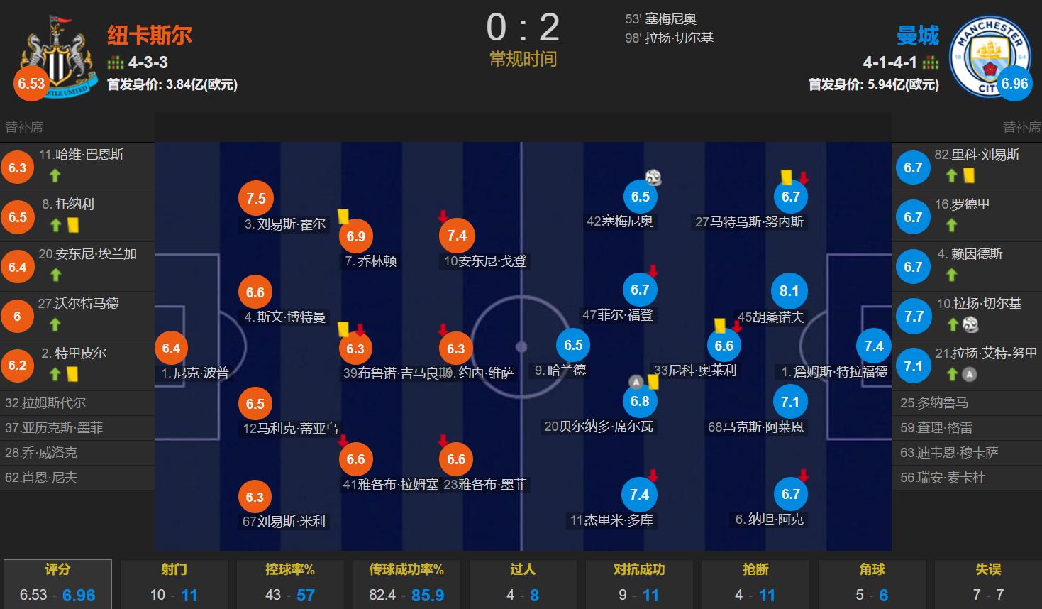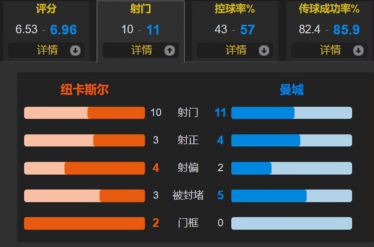 Xem số liệu trận đấu thực sự là một trận đấu cân bằng, Man City kiểm soát bóng 57%, có 11 lần dứt điểm, trong đó 4 lần trúng đích; Newcastle có 10 lần dứt điểm, 3 lần trúng đích. Tóm lại sân nhà Newcastle rất khó chơi, Man City thắng 2-0 là chiến thắng hoàn hảo.