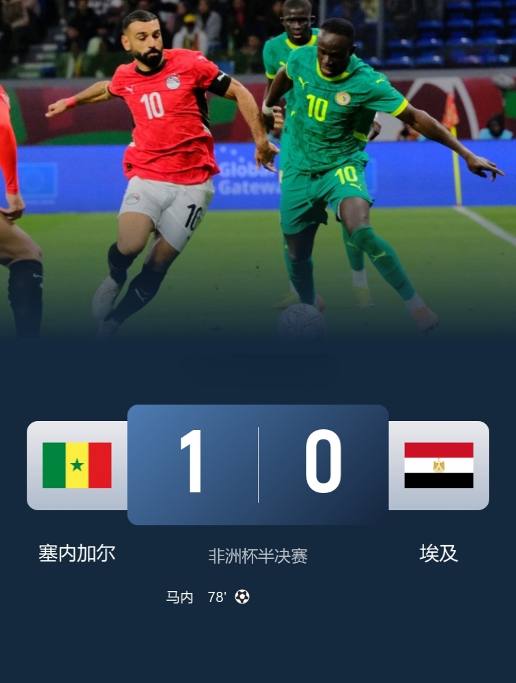 Tổng kết bán kết Cúp bóng đá châu Phi: Senegal thắng sát nút Ai Cập 1-0 để vào chung kết, Mane ghi bàn duy nhất của trận đấu ở phút 78 với cú sút thấp, Ai Cập chỉ có một lần sút trúng đích cả trận! Mane đã vượt qua đồng đội cũ ở Liverpool là Salah.