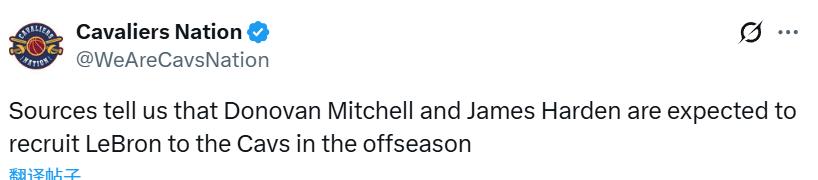 Theo nguồn tin từ Cavaliers Nation, truyền thông của Cleveland Cavaliers, vào ngày 5 tháng 2 theo giờ Bắc Kinh, hậu vệ All-Star Donovan Mitchell cùng James Harden dự định sẽ mời LeBron James gia nhập Cavaliers.