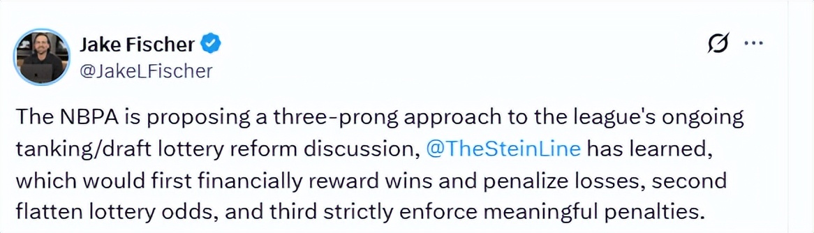 Ngày 28 tháng 3 theo giờ Bắc Kinh, trước đó NBA đã trình ba phương án chống gian lận, lên kế hoạch cải cách quy tắc bốc thăm tuyển chọn để ngăn chặn các đội bóng gian lận. Theo báo cáo tiếp theo của phóng viên Walden từ The Athletic, bên cạnh đó, NBA còn mong muốn mở rộng quyền xử phạt, trừng phạt những đội bóng thao túng tư cách ra sân của cầu thủ và điều chỉnh đội hình luân phiên để cố ý thua cuộc.