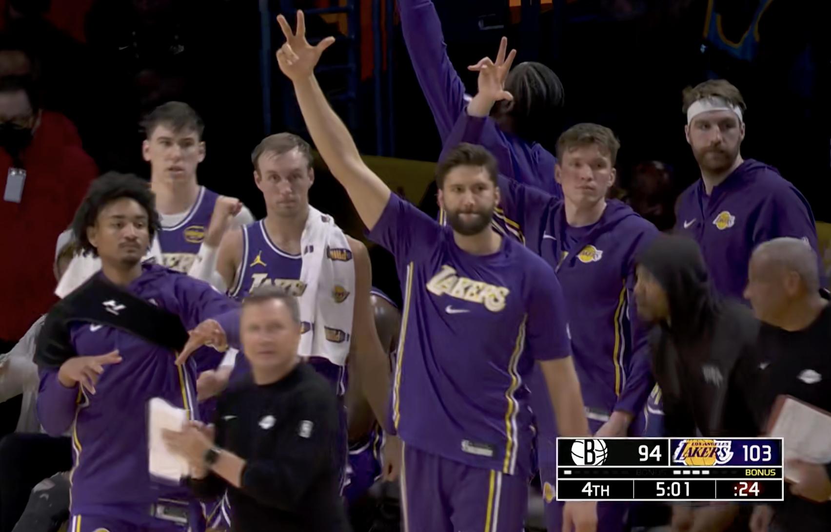 Hayes hai phạt đều vào, Nets liên tục ghi 4 điểm, trình diễn alley-oop dunk băng qua nửa sân, làm Lakers nghỉ.