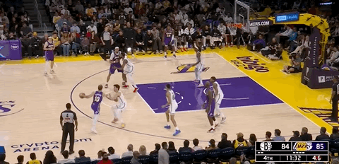 Sau thời gian nghỉ, Nets đình trệ, Lakers qua phạt bóng ghi 3 điểm, đối phương cuối cùng vào bóng, Lakers kiểm soát nhịp độ, cố gắng tiêu hao 24 giây mỗi lần tấn công. Doncic tạo phạm luật tấn công đối phương, lại ném vào ba điểm