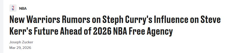 Ngày 30 tháng 3 theo giờ Bắc Kinh, huấn luyện viên Kerr của Warriors đang ở năm cuối hợp đồng và hiện chưa gia hạn. Warriors có thể phải thay HLV chính vào mùa sau, nhưng Curry hy vọng Kerr sẽ trở lại tiếp tục chỉ đạo.