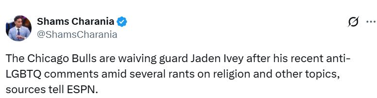Ngày 31/3, theo tin từ Shams và ESPN, sau những phát ngôn phản LGBTQ và nhiều bình luận gay gắt về tôn giáo và các chủ đề khác của Ivey gần đây, Chicago Bulls đã quyết định sa thải cầu thủ này.