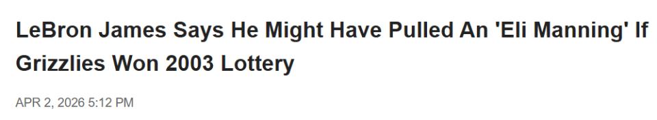 Ngày 3 tháng 4 theo giờ Bắc Kinh, LeBron James cho biết, nếu Memphis Grizzlies có được lượt chọn đầu tiên trong cuộc bốc thăm tuyển chọn NBA năm 2003, ông có thể sẽ từ chối thi đấu cho Grizzlies, và so sánh hành động không trình diện này với cách Eli Manning từ chối chơi cho San Diego Chargers trong cuộc tuyển chọn NFL năm 2004.