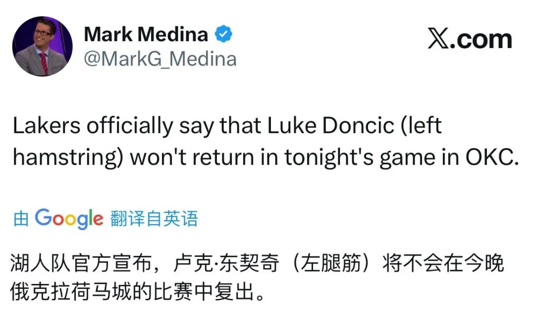 Tin tức mới nhất cho biết Doncic bị chấn thương cơ đùi trái, với chấn thương cấp một dự kiến chỉ nghỉ thi đấu 1-2 tuần, nhưng nếu nghiêm trọng có thể dẫn đến kết thúc sớm mùa giải.