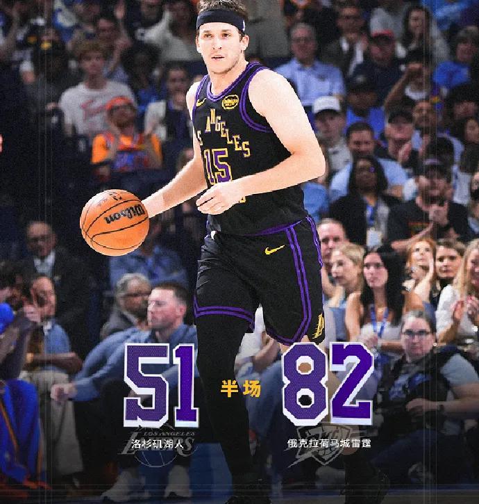 Hiệp hai, Thunder tiếp tục đánh bại Lakers với tỷ số 38-30, kết thúc nửa đầu trận với lợi thế khổng lồ 82-51, biến thành một màn trình diễn nghiêng hẳn về một phía.