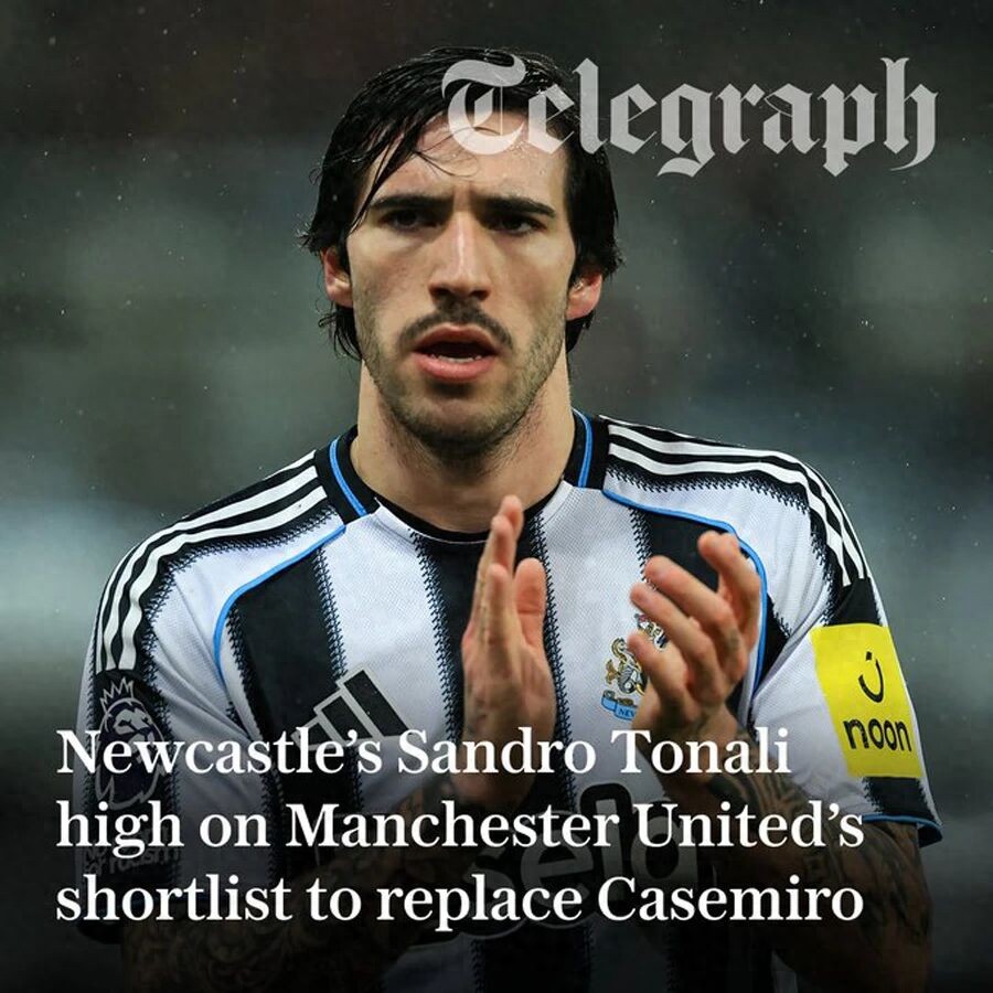 Theo báo Anh The Telegraph, Man Utd đã đưa Sandro Tonali của Newcastle vào danh sách ứng viên cho vị trí tiền vệ trung tâm trong kỳ chuyển nhượng mùa hè. Cầu thủ người Ý 25 tuổi được xem là lựa chọn lý tưởng để thay thế Casemiro, nhưng mức phí chuyển nhượng có thể lên tới 100 triệu bảng, và người đại diện của anh đang thúc đẩy thương vụ này.