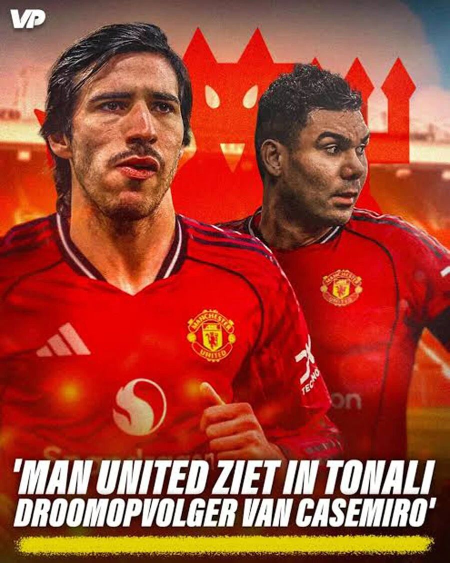 Man Utd đã xác nhận rằng cựu binh 33 tuổi Casemiro sẽ ra đi khi hợp đồng kết thúc vào mùa hè này, sau ba mùa giải thi đấu tại Ngoại hạng Anh, Tonali hoàn toàn có cơ hội trở thành người thay thế "Gã béo". Khả năng ghi bàn của anh không bằng ngôi sao Brazil, mùa này chưa ghi bàn nào nhưng có 5 pha kiến tạo. Truyền thông Anh cho biết Man Utd đã liên hệ với người đại diện của Tonali để tìm hiểu tình hình.