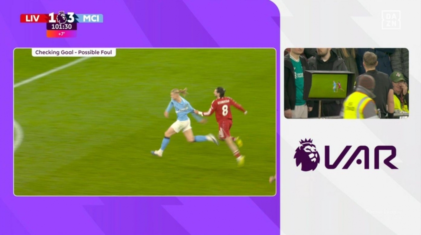 Haaland sau đó cũng kéo áo Szoboszlai trước khi bóng lăn qua vạch vôi, và tất nhiên VAR đã vào cuộc trong lúc các cầu thủ Man City ăn mừng. Bàn thắng bị từ chối, còn Szoboszlai nhận thẻ đỏ trực tiếp vì lỗi ban đầu với Haaland.