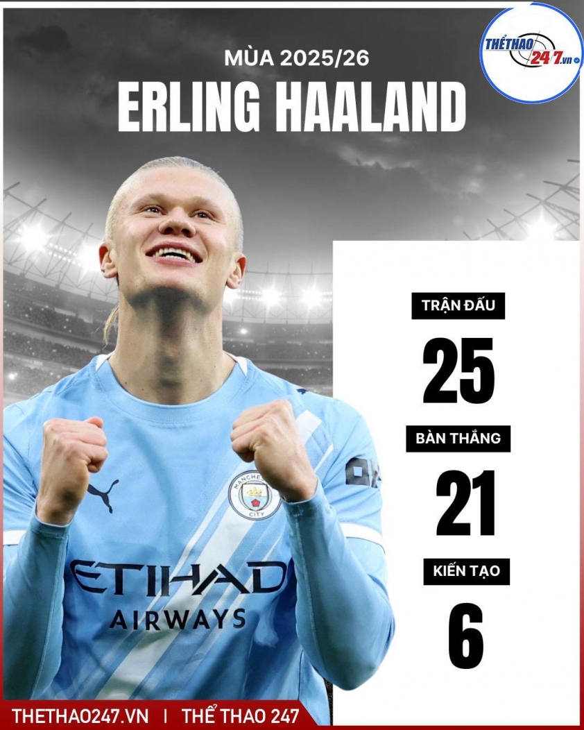Với bàn thắng vào lưới Liverpool, Haaland nâng tổng thành tích lên 41 bàn sau 40 trận trên mọi đấu trường cho Man City và đội tuyển Na Uy. Dù con số rất ấn tượng, tiền đạo này khẳng định anh chưa hài lòng và quyết tâm nâng tầm phong độ trong phần còn lại của năm 2026.