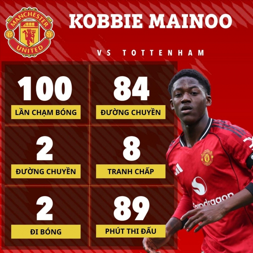 Chiến thắng 2-0 của Man United trước Tottenham tại Old Trafford không đơn thuần là ba điểm. Đó là trận đấu Kobbie Mainoo tiếp tục cho thấy vì sao anh được xem là tương lai của tuyến giữa đội bóng, cũng như của tuyển Anh. Cầm nhịp, thoát pressing, xử lý gọn gàng trong không gian hẹp, Mainoo mang đến cảm giác điềm tĩnh hiếm thấy ở một cầu thủ mới 20 tuổi.
