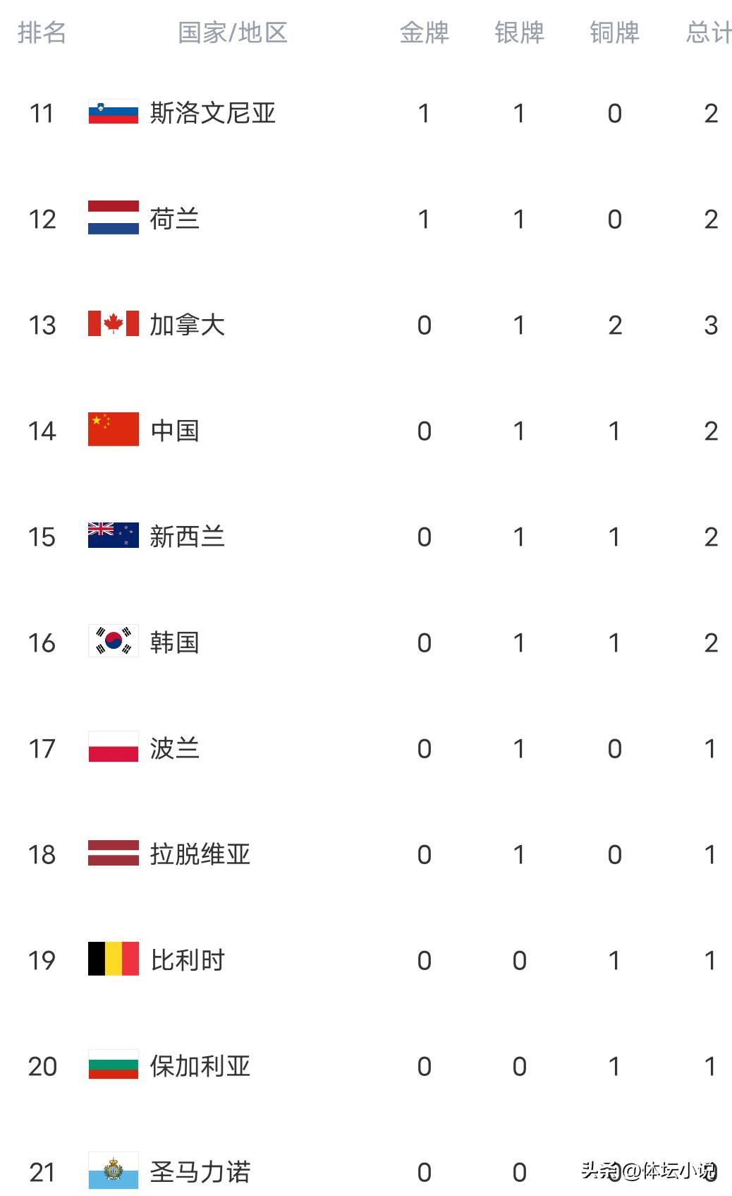 Theo giờ Bắc Kinh ngày 11 tháng 2, ngày thi đấu thứ tư của Thế vận hội Mùa đông đã kết thúc, trong ngày có 9 huy chương vàng được trao hết, Na Uy bùng nổ giành 3 huy chương vàng trong một ngày trở thành người chiến thắng lớn, bảng tổng sắp huy chương mới nhất đã được cập nhật với nhiều thay đổi lớn, Na Uy dẫn đầu với 6 huy chương vàng, Thụy Điển, Thụy Sĩ và Đức mỗi nước có 3 huy chương vàng lần lượt xếp thứ hai, ba và bốn, Mỹ đứng thứ bảy, Nhật Bản đứng thứ tám trở thành quốc gia đứng đầu châu Á, trong khi Trung Quốc tụt xuống vị trí thứ 14!