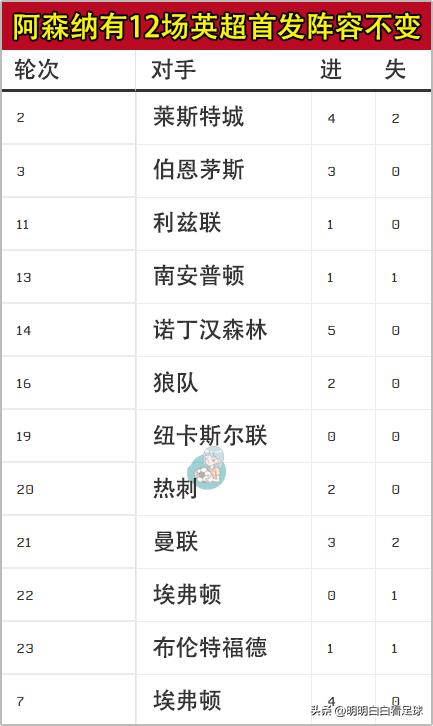 Một sự thật:Arsenal là đội có thay đổi đội hình ít nhất Ngoại hạng Anh mùa nàyhọ có 12 trận Ngoại hạng Anh xuất phát 11 người hoàn toàn giống nhau.