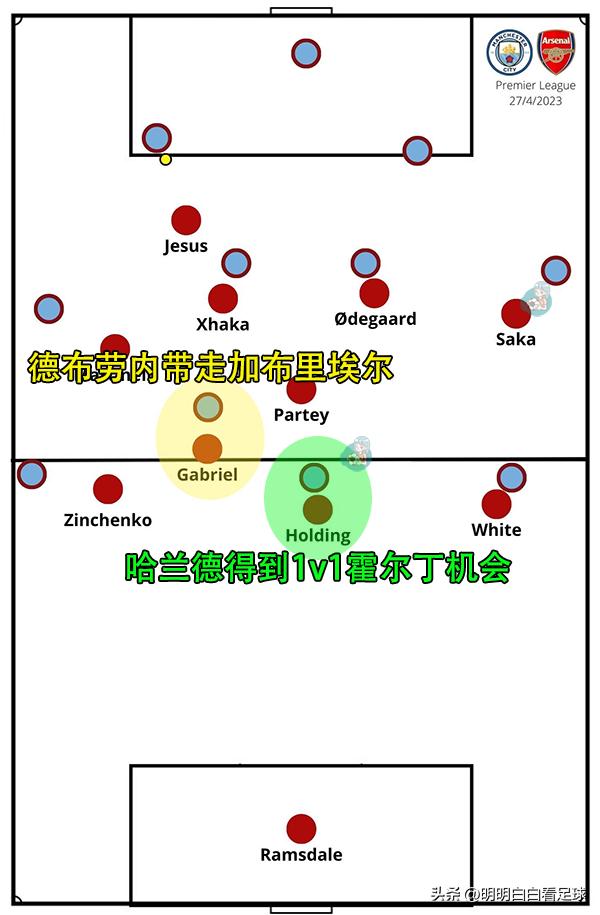 Trận trước Guardiola đã tận dụng điểm này, để De Bruyne đá trung phong, kéo Gabriel đi, tạo cơ hội 1 đối 1 cho Haaland với Holding, trực tiếp đánh bại điểm yếu này của Holding.