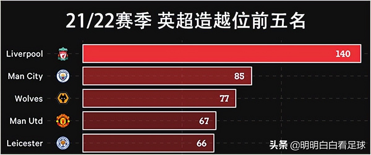 Hiện Liverpool đã tạo ra 140 lần bắt việt vị, đứng đầu Ngoại hạng Anh, bỏ xa các đội khác.